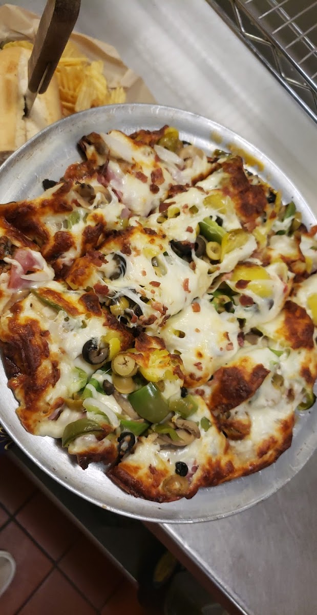 My 11 year old son was asked to find a pizza for dinner and this place was what he found, we picked up the pizza and it was pretty good had I not been with my 11 year old it looked like a nice place to have a few drinks!